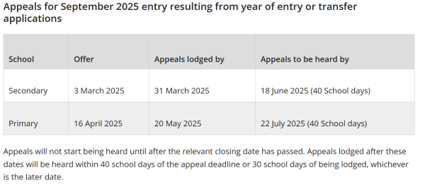 The following timetable applies and links for parents to appeal will show on the Surrey County Council website towards the end of February 2025: